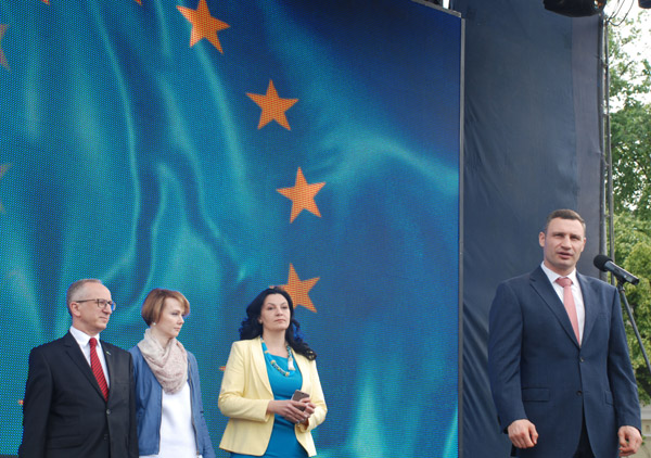 В одном месте играл военный оркестр. В другом — руководство Киева и страны толкало речи о стремлении в Евросоюз. Где-то перебрасывались регбийным мячом. Где-то прыгали на батуте, или упражнялись на брусьях.