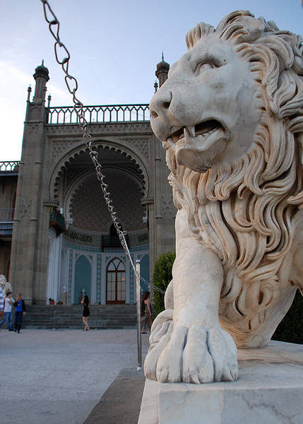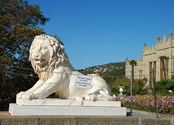 И это при том, что Боннанивские львы огорожены цепями, изрядно портящими кадр. Мысль понятна, ведь каждый «турист» стремится минимум возложить на них могучую длань, а максимум могучую жо… Так и развалиться недолго, несмотря на то, что ты мраморный. Но тенденция не радует. С такими темпами в Крыму скоро лишь останется взирать на достопримечательности с огороженных дорожек, шаг влево с которых будет приравнен к побегу.
