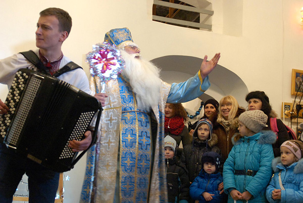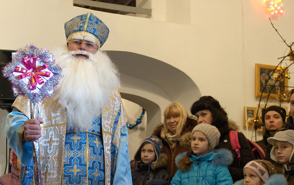 В первый день зимы в Большой лаврской колокольне встречал гостей самолично Святой Николай.