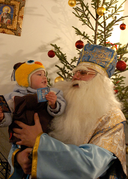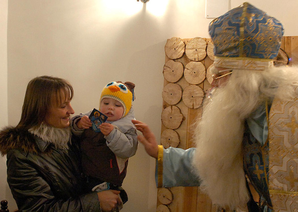 И, конечно, встреча с самим хозяином резиденции. Он спустился к гостям в общий зал, а затем несколько часов принимал детвору у себя в кабинете. Малышня была в восторге. Они читали святому стихи, рассказывали о себе, получали подарки, обещали в новом году не расстраивать своих родителей и творить добрые дела.