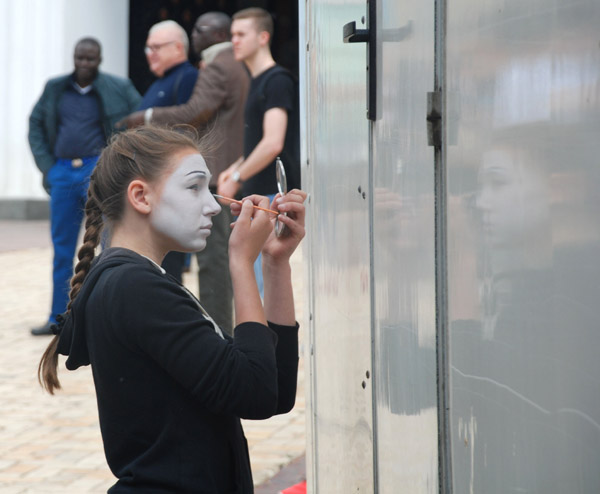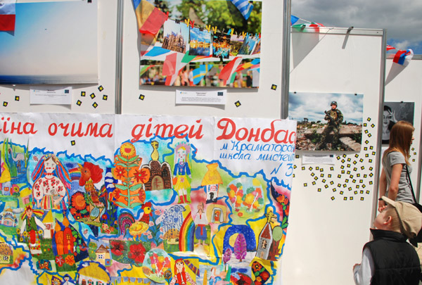 DSC_3389aЧто порадовало  — большое количество детей. Они с радостью махали европейскими флажками, писали пожелания на стендах, хвалились забугорными нарядами, фотографировались, ворочали шахматные фигуры, рисовали, и чувствовали себя абсолютно счастливыми.