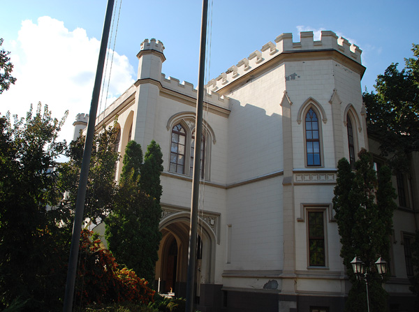 К небу устремились стены двухэтажного замка из непременного ракушечника, облицованного инкерманским камнем. Пара корпусов, изящные окна, восьмигранные башни.